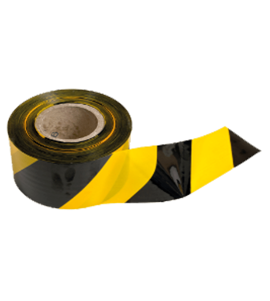 Cinta de balizamiento anónima para delimitar diferentes espacios. Disponible en  blanco/rojo y amarillo/negro.