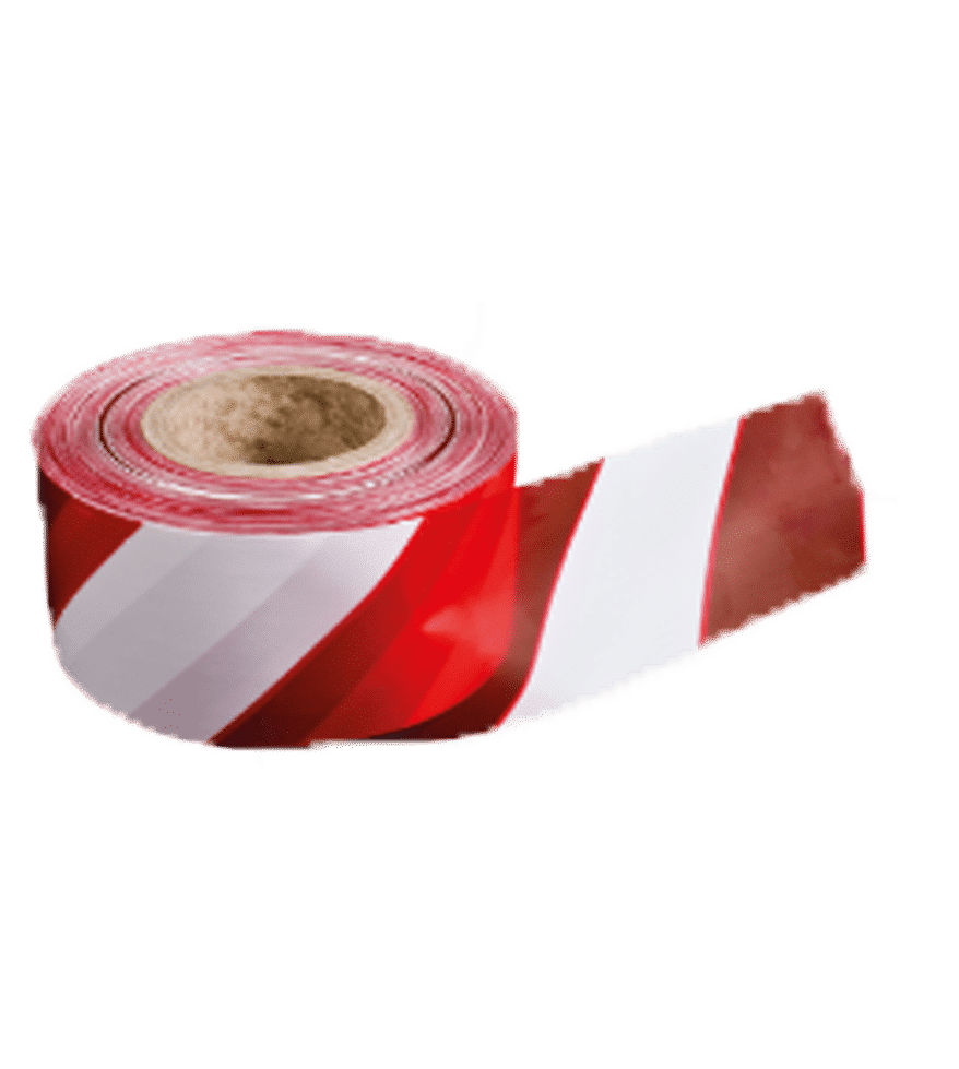 Cinta de balizamiento anónima para delimitar diferentes espacios. Disponible en blanco/rojo y amarillo/negro.