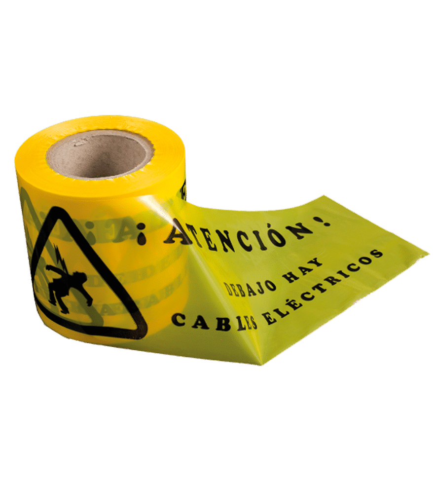 La cinta de balizamiento cable eléctrico para conducciones está diseñada para la colocación de éstas e identificación en zanjas y excavaciones de obra.