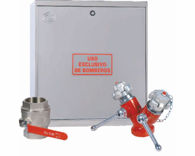 La instalación de columna seca es obligatoria según el CTE DB-SI en edificios con altura de evacuación superior a 24 metros. Este sistema permite a los bomberos inyectar agua a presión desde la fachada del edificio, alimentando las tomas de cada planta para combatir el incendio. El cofre C40PCI-C cumple con todas las especificaciones del Documento Básico SI Seguridad en caso de Incendio.