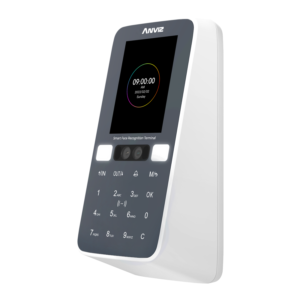 El Anviz W3 es un terminal autónomo de control de acceso y presencia que combina conectividad TCP/IP y WiFi para una gestión integral de empleados. Diseñado para instaladores profesionales y departamentos de recursos humanos que necesitan un sistema fiable de registro horario y control de entradas con tecnología de identificación avanzada.