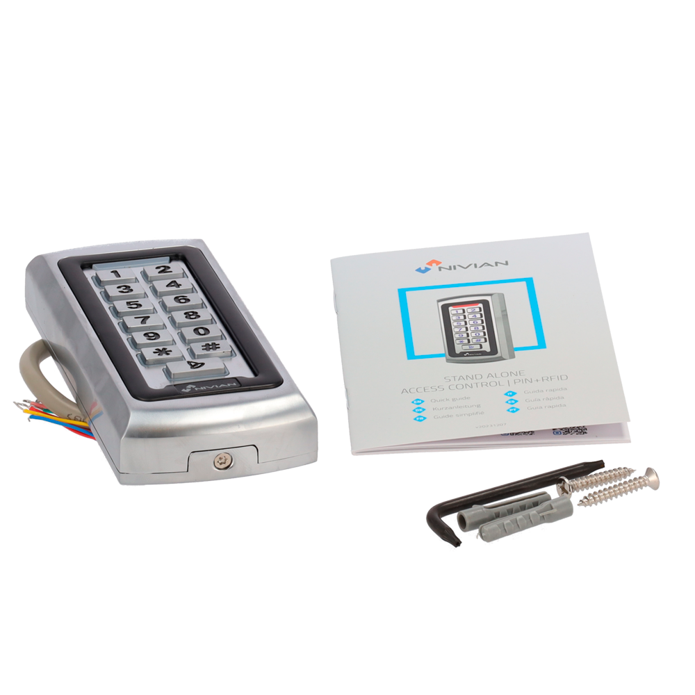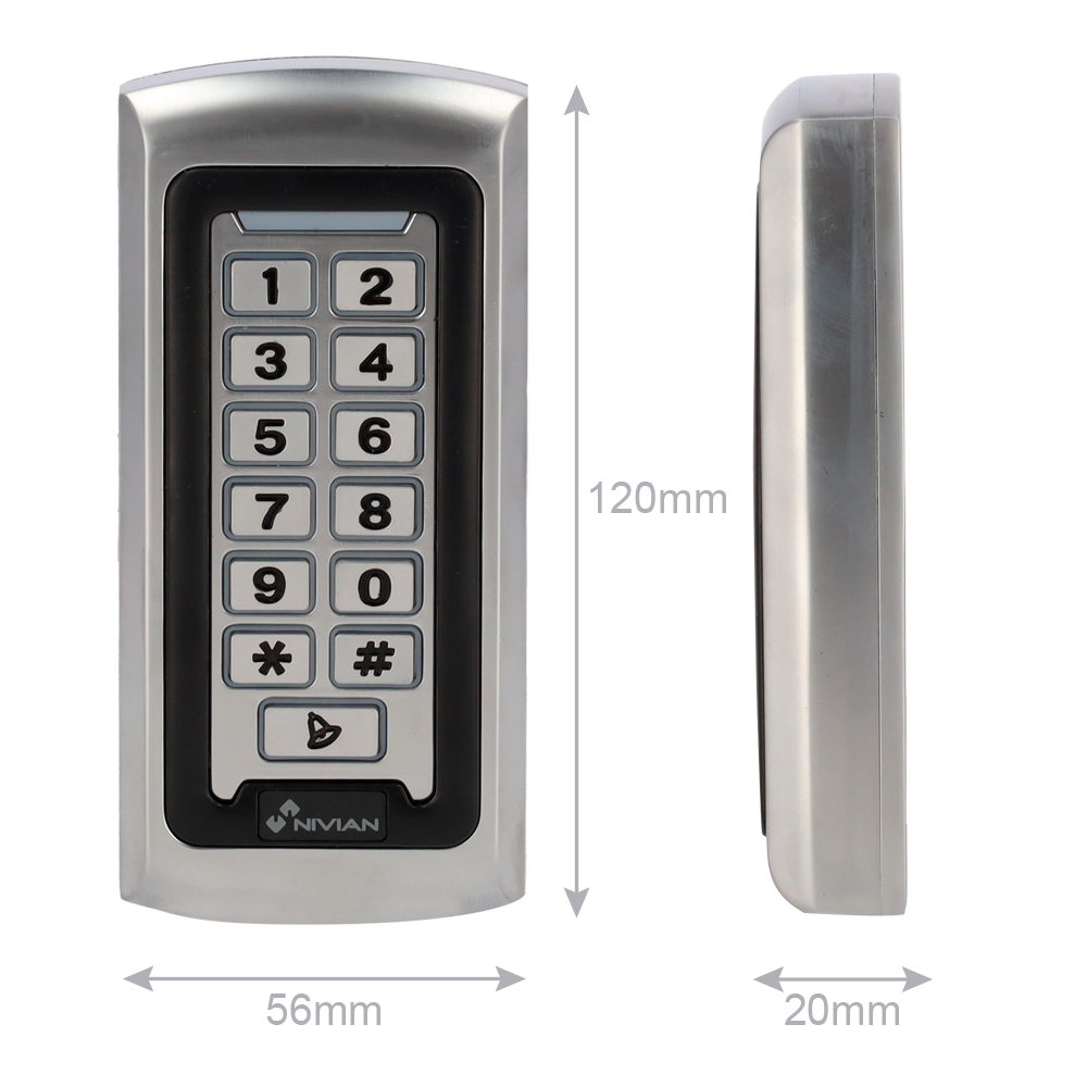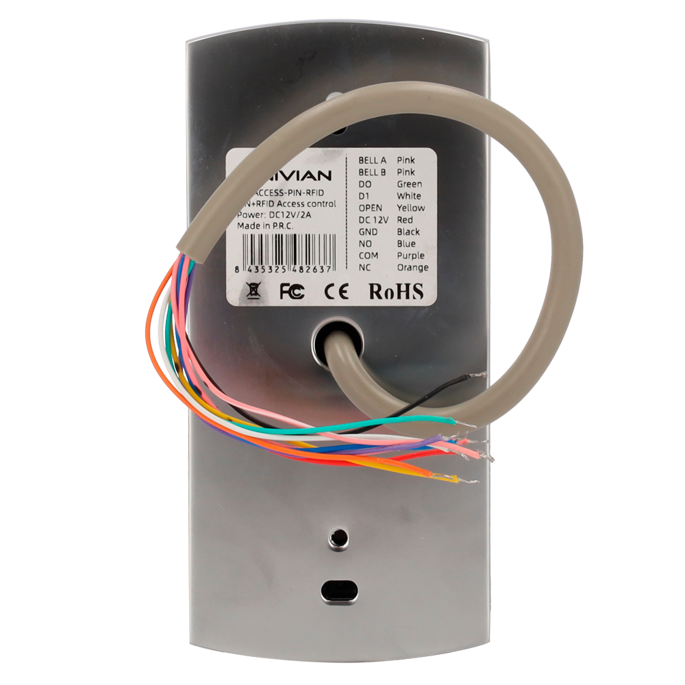 Este equipo permite la identificación a través de tarjetas o llaveros con tecnología RFID EM de 125 kHz, así como teclado para códigos numéricos.