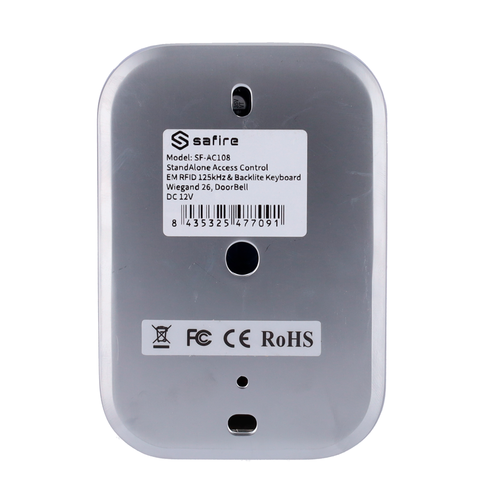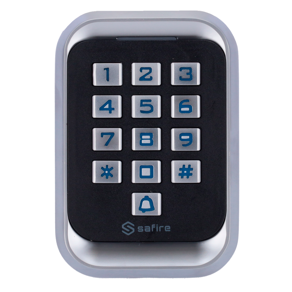 Este equipo permite la identificación a través de tarjetas o llaveros con tecnología RFID EM de 125 kHz, así como teclado para códigos numéricos.