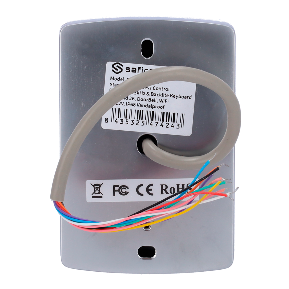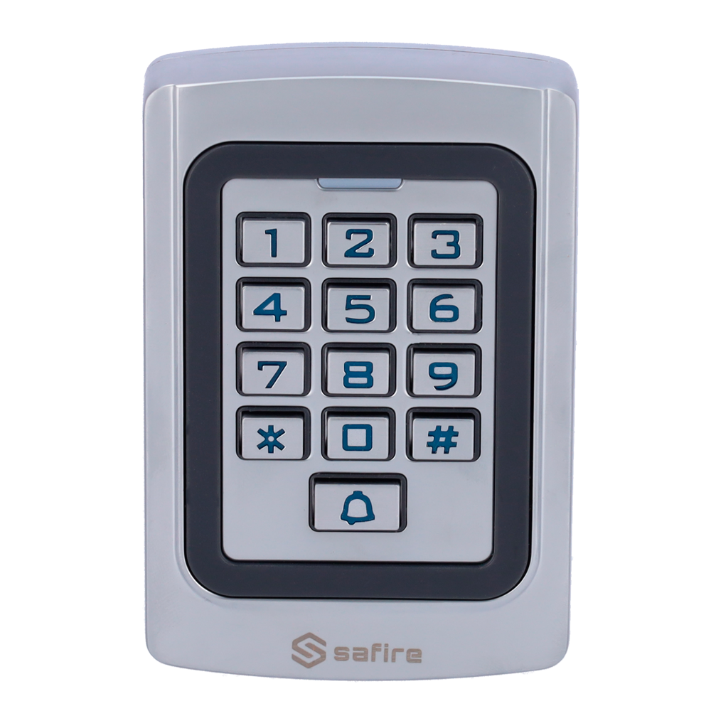 Este equipo permite la identificación a través de tarjetas o llaveros con tecnología RFID EM de 125 kHz, así como teclado para códigos numéricos. Además, dispone de códigos PIN temporales para dar accesos limitados desde su aplicación móvil Tuya Smart.