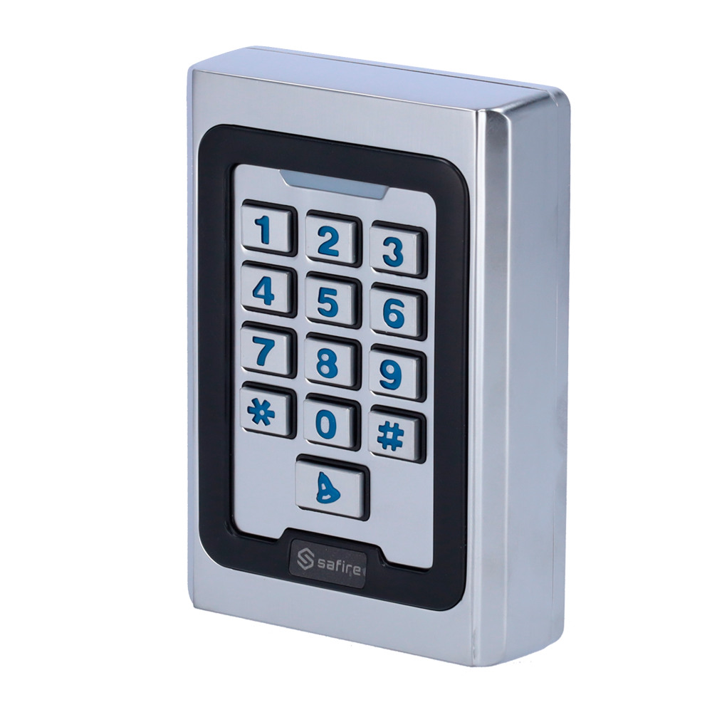 Este equipo permite la identificación a través de tarjetas o llaveros con tecnología RFID EM de 125 kHz, así como teclado para códigos numéricos.
