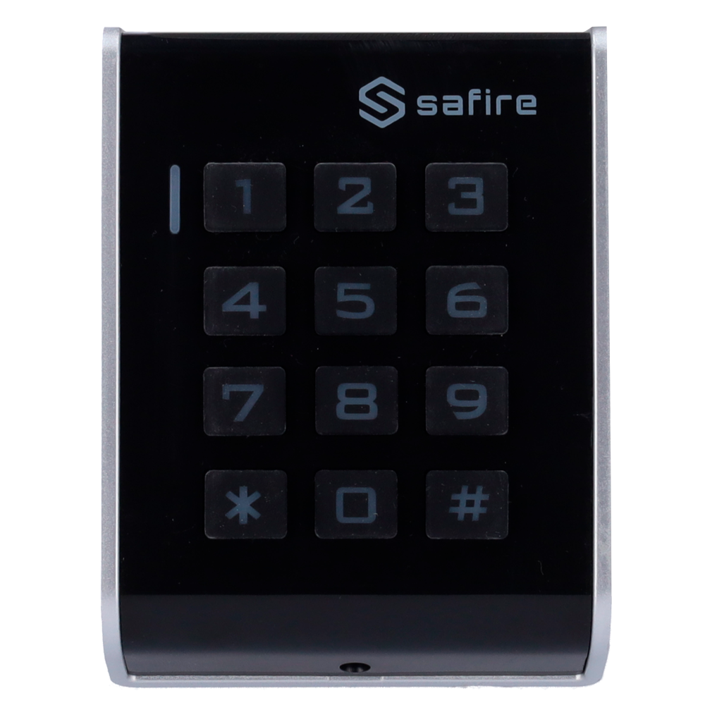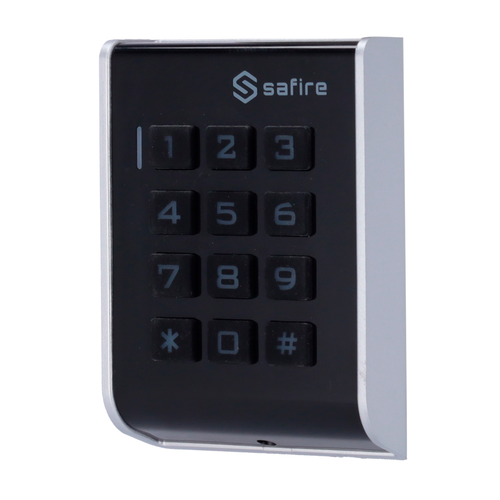 Este equipo permite la identificación a través de tarjetas o llaveros con tecnología RFID EM de 125 kHz, así como teclado para códigos numéricos.