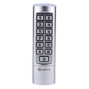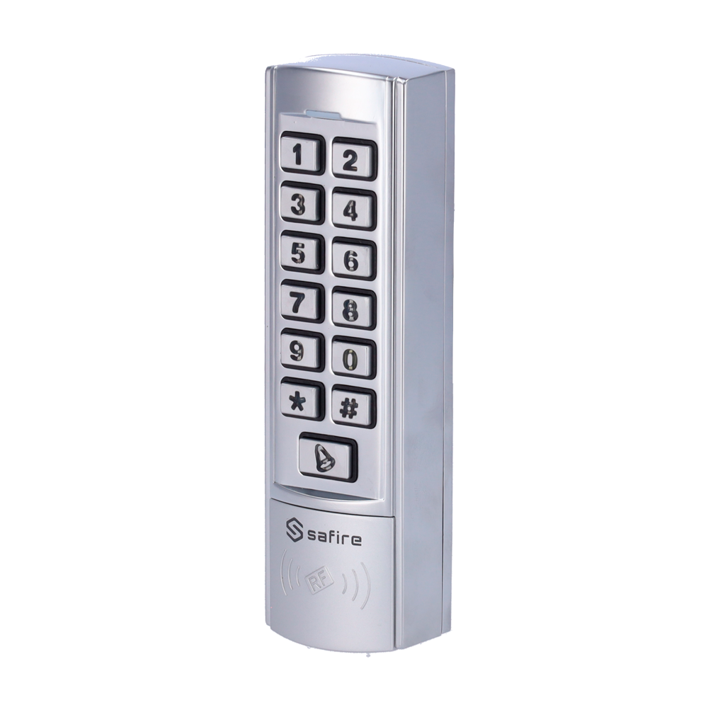 Este equipo permite la identificación a través de tarjetas o llaveros con tecnología RFID EM de 125 kHz, así como teclado para códigos numéricos.