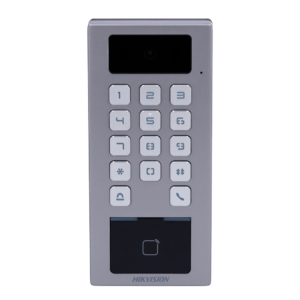 Control de acceso con cámara IP65 IK09 – Tarjeta MF DESFire, QR y PIN – 10.000 usuarios | 300.000 registros – TCP/IP, WiFi, RS485 y Wiegand – Controladora integrada – iVMS-4200 | Hik-Connect