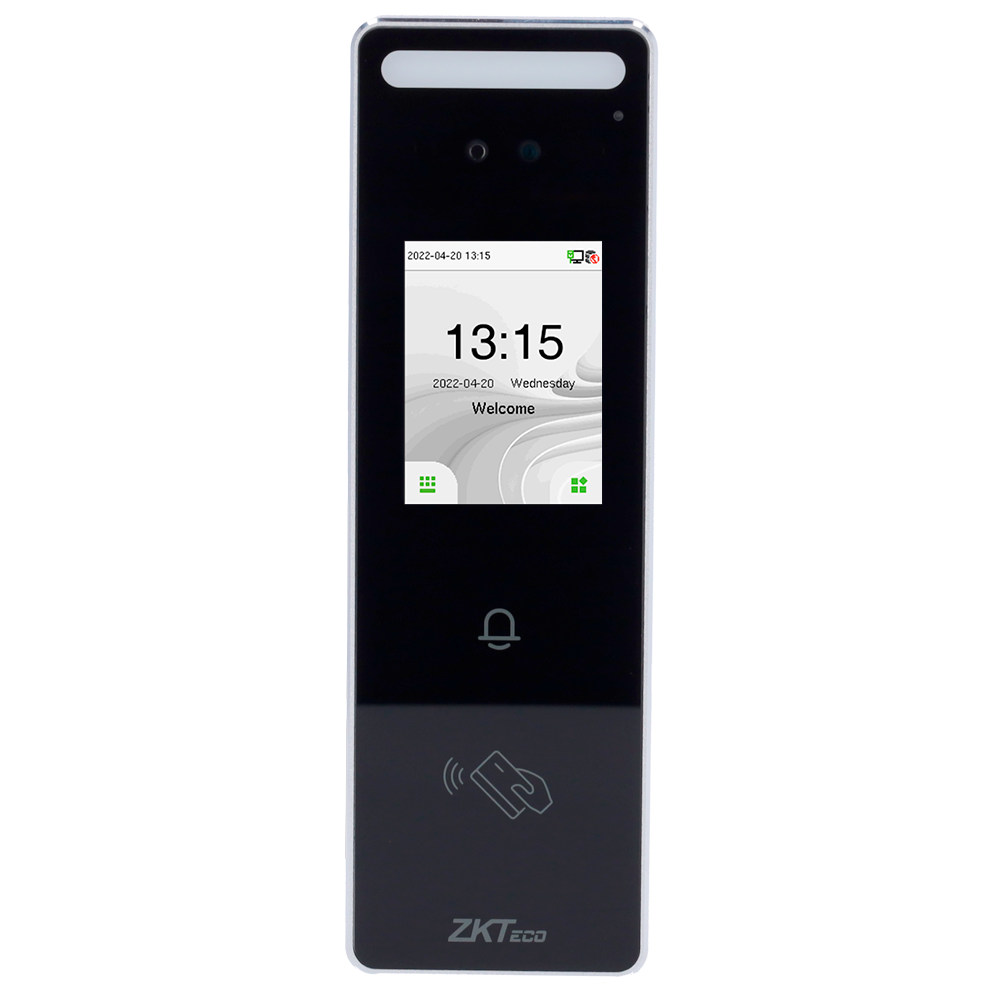 Este equipo permite la identificación a través de tarjetas o llaveros con tecnología MF de 13.56 MHz, así como teclado para códigos numéricos y biometría con reconocimiento facial.