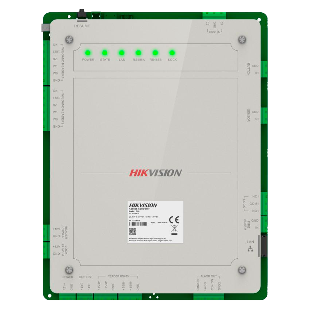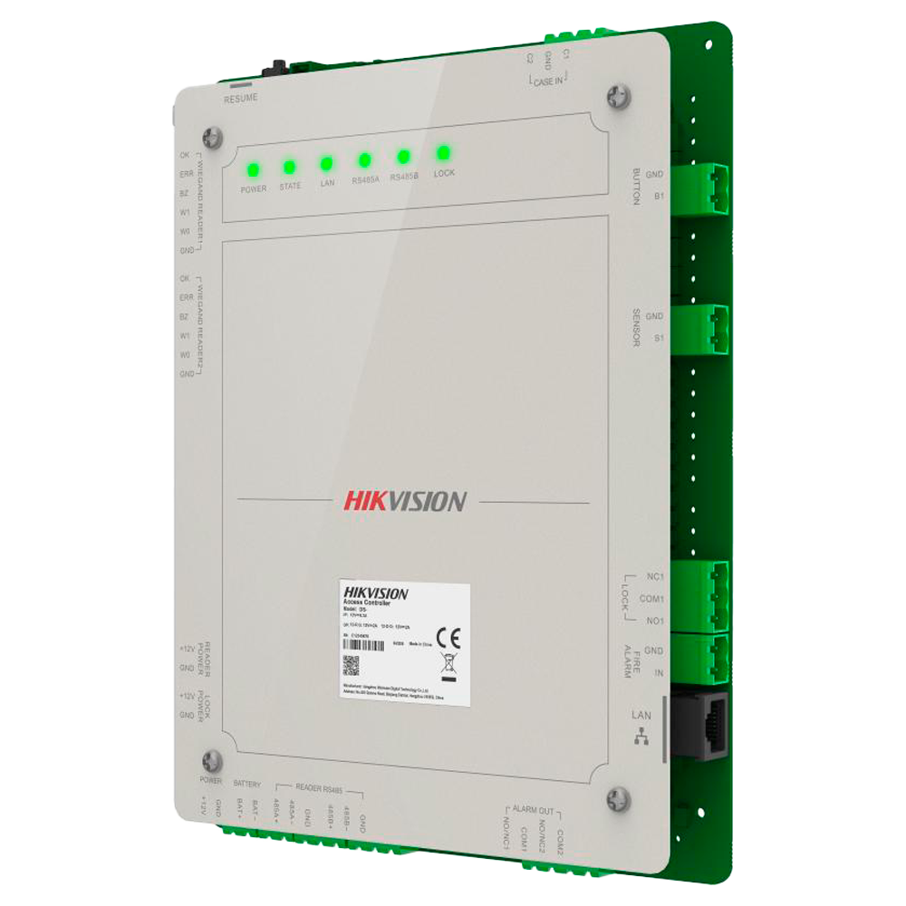 La controladora se integra nativamente en el ecosistema de gestión de Hikvision, permitiendo administración centralizada mediante software iVMS-4200 o plataformas HikCentral para instalaciones de mayor envergadura. La comunicación mediante protocolo TCP/IP facilita la conexión en red, mientras que las interfaces Wiegand de entrada y salida aseguran compatibilidad con lectores externos y controladoras de terceros.