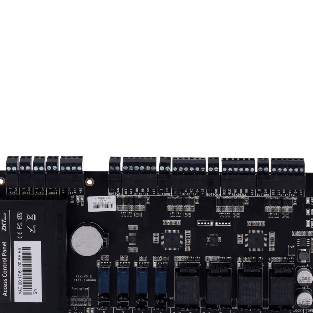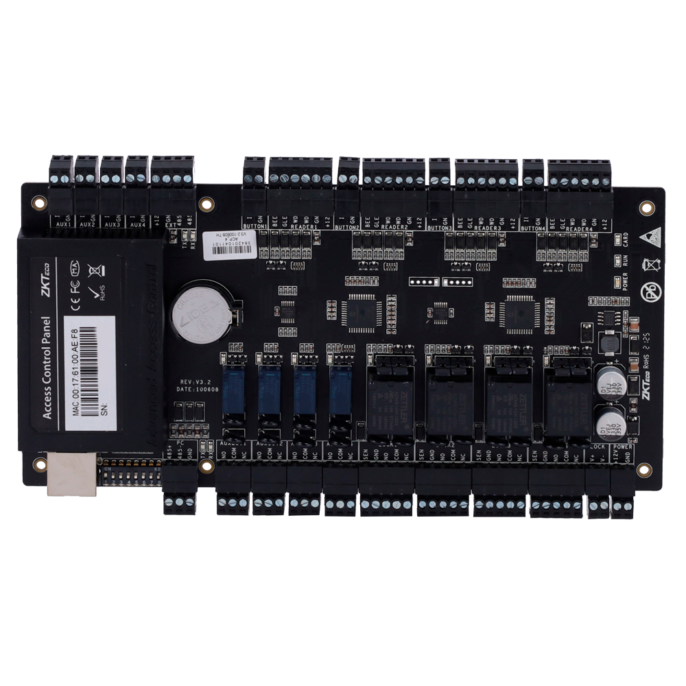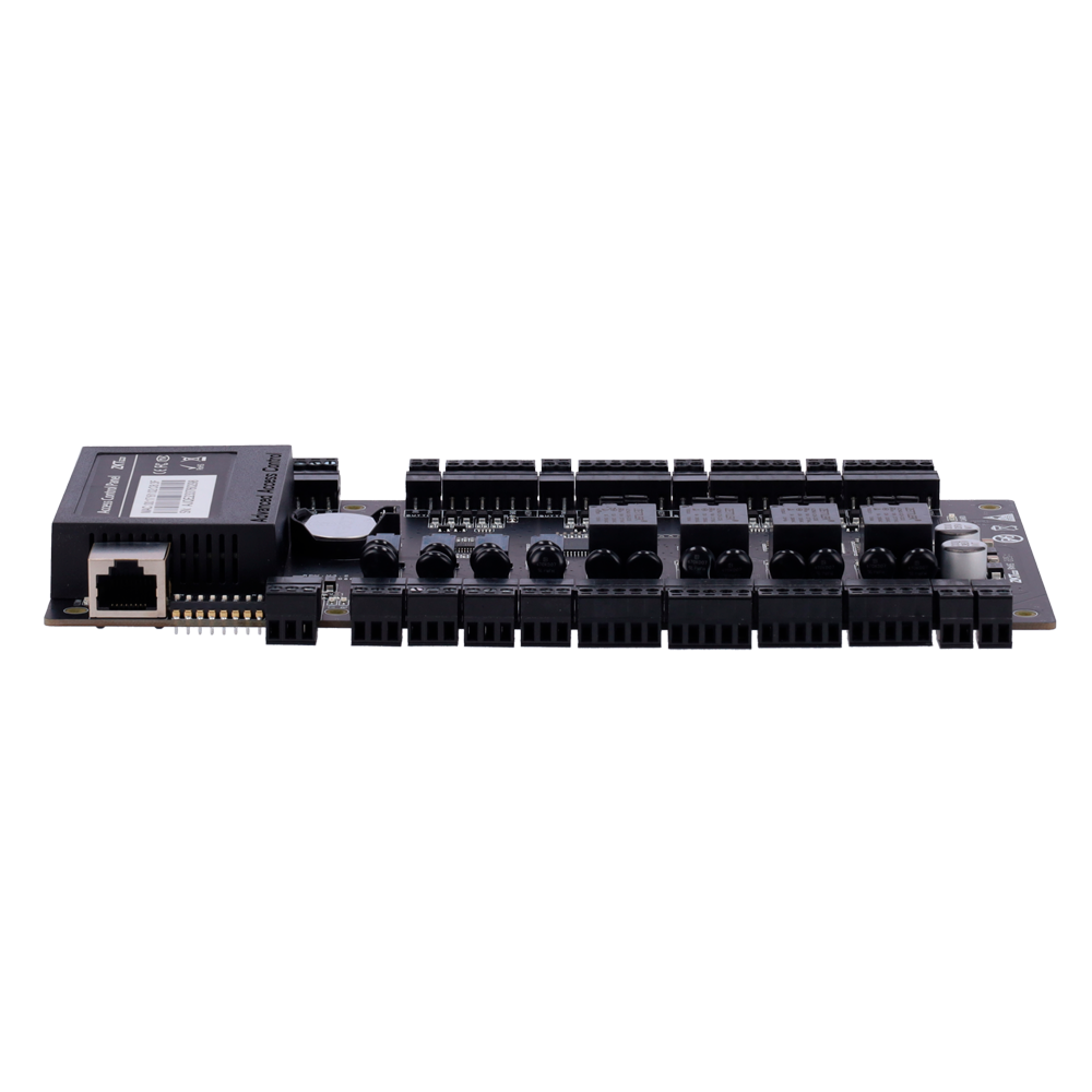 Las controladoras permiten gestionar varias puertas de manera simultánea mediante varias salidas de relé. Este modelo cuenta con 4 salidas de relé, siendo configurables como contacto seco (sin tensión) o contacto mojado (con tensión).