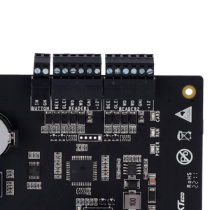 Esta controladora soporta lectores basados en el protocolo Wiegand, que permite la conexión a través de un cableado directo de cada lector a la controladora. Cuenta con 2 lectores para realizar entrada y salida en cada puerta.