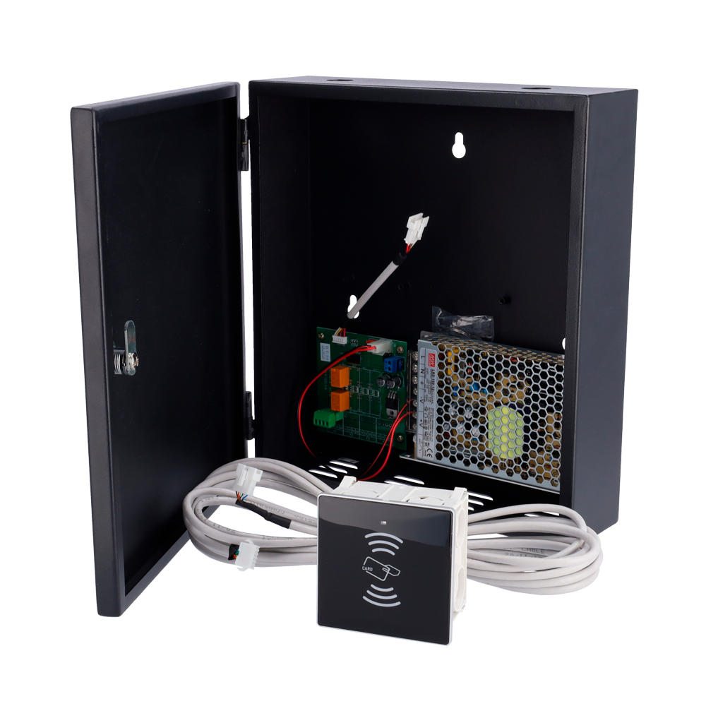 Controladora de acceso RFID – Lector de tarjetas MF – Acceso por tarjeta – Salida de relé para 1 puerta – Incluye alimentador – Gestión con software Hotel Lock System