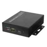 El diseño compacto facilita su ubicación en bastidores de equipamiento o detrás de monitores, optimizando el espacio en salas técnicas. La alimentación mediante adaptador externo permite flexibilidad en el tendido de cableado, adaptándose a las condiciones específicas de cada instalación.