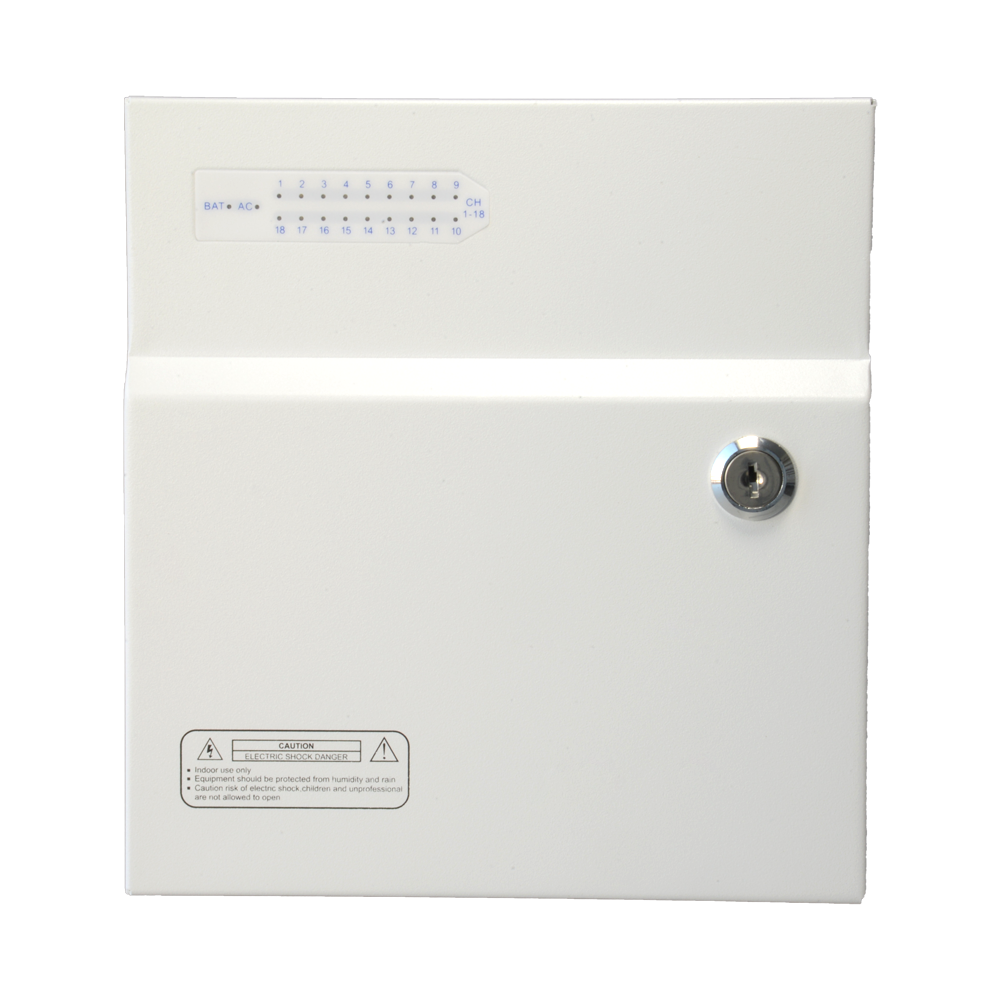 La Dahua PD250W-18-12V-UPS es una caja de distribución profesional con 18 salidas independientes de 12V DC y potencia total de 250W, equipada con sistema UPS integrado y protección individual por fusibles. Diseñada específicamente para instalaciones de videovigilancia y sistemas de seguridad que requieren alimentación ininterrumpida y distribución centralizada.