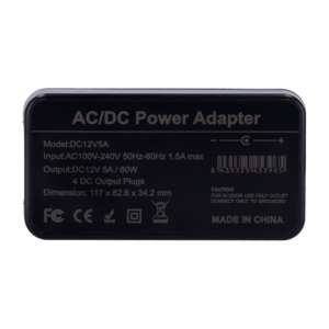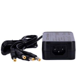 Se alimenta conectándolo directamente a la corriente alterna (AC 100/240 V) y proporciona alimentación contínua DC 12 V 5 A. Dispone de cuatro salidas con jack de alimentación estándar.