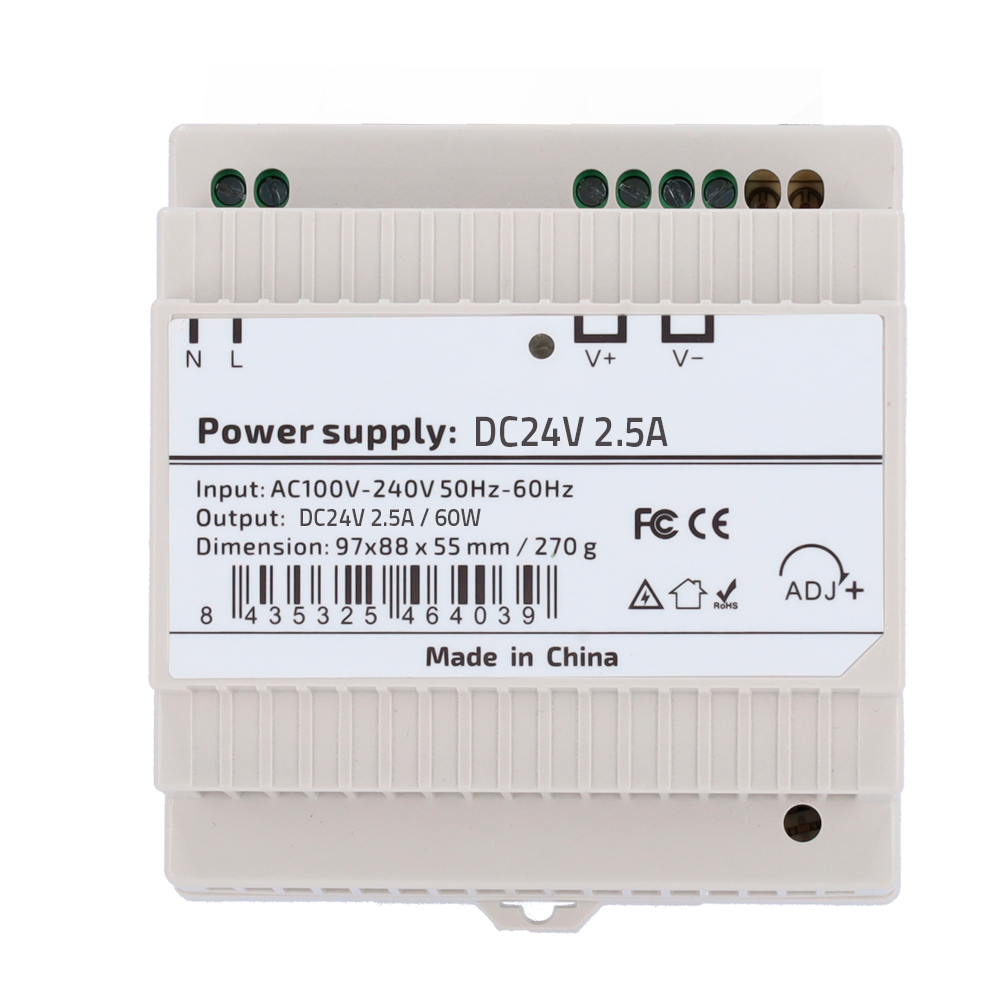 Fuente/alimentador para sistemas de seguridad | Tipo: Fuente conmutada | Salida: 24 V / 2.5 A | Potencia: 60 W | Formato: Compacta | Ref.: DC24V2A5-DIN-P