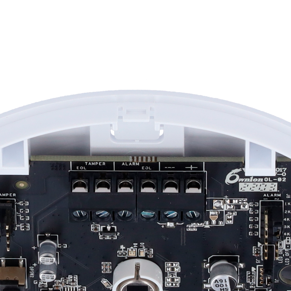 Detector cableado de techo doble tecnología – Alcance detección 12 m – Resistencias fin de línea (EOL) seleccionables – Alimentación 9~16 VDC – Uso interior – Certificado Grado 2