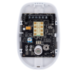 La base de montaje orientable permite ajuste del ángulo de cobertura en instalaciones de esquina o pared, optimizando la detección en pasillos, vestíbulos y salas diáfanas. El indicador LED multicolor proporciona retroalimentación visual durante la configuración y pruebas de walk-test, agilizando el proceso de puesta en marcha y verificación del sistema.