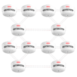 La capacidad de interconexión permite vincular hasta 24 detectores en una misma instalación, con un alcance de transmisión RF de hasta 250 metros en campo abierto. En condiciones reales con obstáculos arquitectónicos (muros, forjados, tabiquería), el alcance efectivo se sitúa entre 80 y 120 metros, suficiente para la mayoría de aplicaciones residenciales y pequeños comercios.
