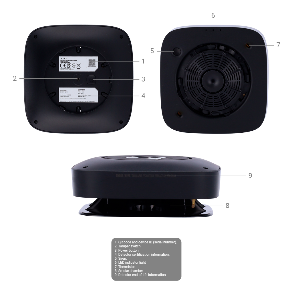 Detector de humo, termovelocimétrico y CO – Baterías integradas – Inalámbrico 868 MHz Jeweller – Sirena 85 dB incorporada – Permite funcionamiento autónomo – Certificado EN 50291 y EN 14604 –