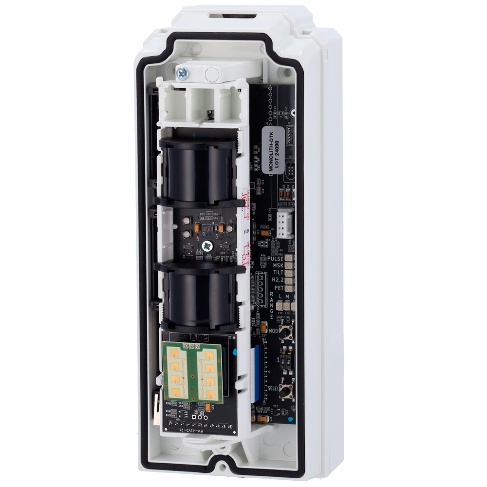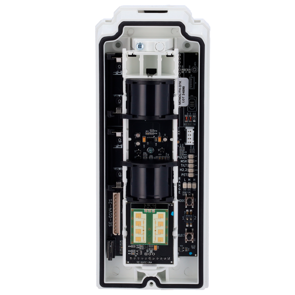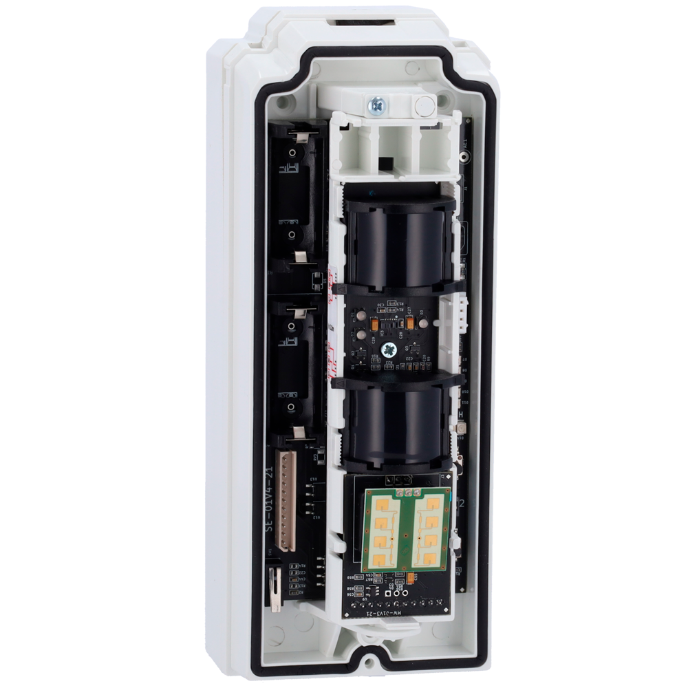 Detector exterior Duevi bajo consumo – Preparado para integrar transmisor de terceros – Doble PIR y microondas (24 GHz) – Detección 15 m / Antimasking / Inmune a mascotas – Alimentación con 2 pilas CR123A – Uso exterior IP54 / Antivandálico IK10
