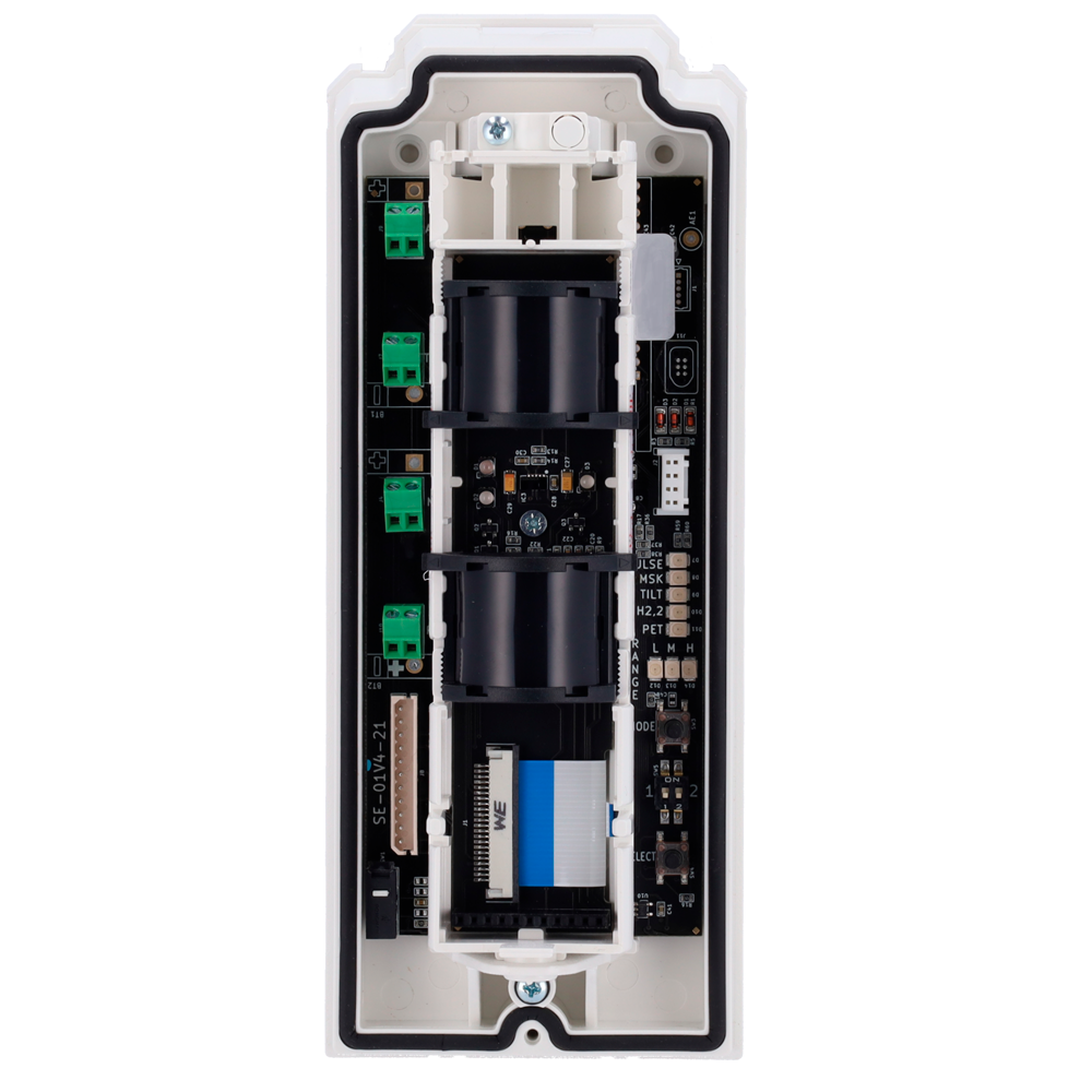 Detector exterior Duevi cableado – Doble PIR / Detección 15 m – Antimasking / Inmune a mascotas – Alimentación 9.6 ~ 14.5 VDC – Compatible con sistemas de alarma cableados – Uso exterior IP54 / Antivandálico IK10