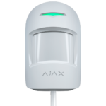 Detector de movimiento por infrarrojos pasivos FIBRA-MOTIONPROTECT-W-NF con certificación NFA2P y Grado 2 de seguridad. Comunicación cableada mediante protocolo Fibra de Ajax Systems, con alcance de detección de 12 metros, inmunidad a mascotas y sensibilidad ajustable en tres niveles para instalaciones profesionales de sistemas de intrusión.