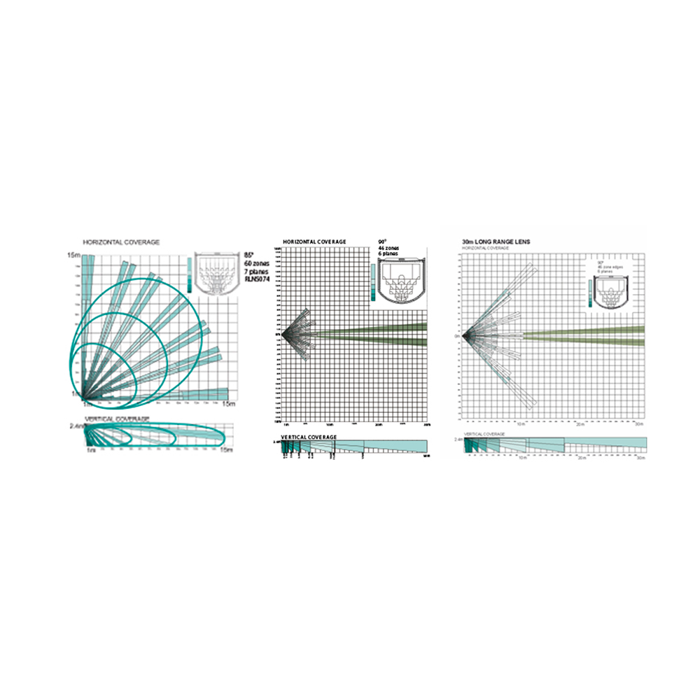 • Lente de gran alcance con 46 zonas y 6 planos (15 m en 90º con haces de 30 m para H = 2.4 m)