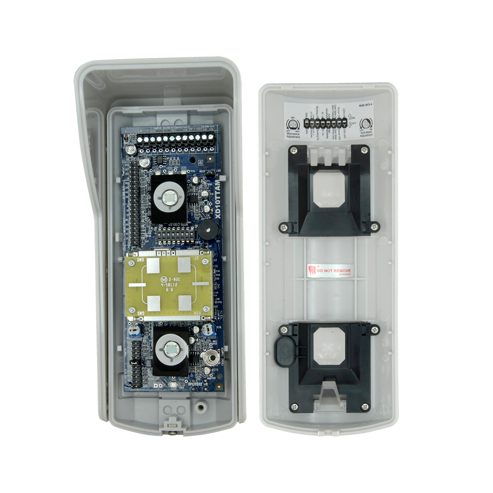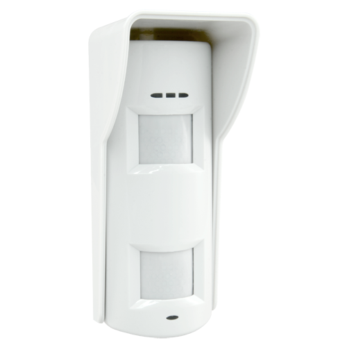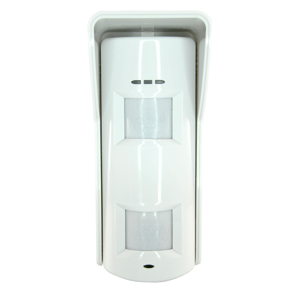 Detector de movimiento cableado, específico para cubrir zonas en exterior. Detección efectiva y segura gracias a su triple tecnología: 2 sensores infrarrojos pasivos duales de bajo ruido y 1 unidad de microondas Doppler que funcionan de forma inteligente y coordinada para evitar las habituales falsas alarmas en exteriores.