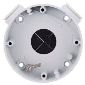 Permite alojar el alimentador, el cableado y los accesorios de la instalación en su interior. Dispone de múltiples orificios para instalación de diferentes tipos de cámaras domo o bullet. Fijación a pared o techo a través de 4 tornillos. La cámara queda instalada en la cubierta desmontable del soporte. Permite el paso interno del cableado.