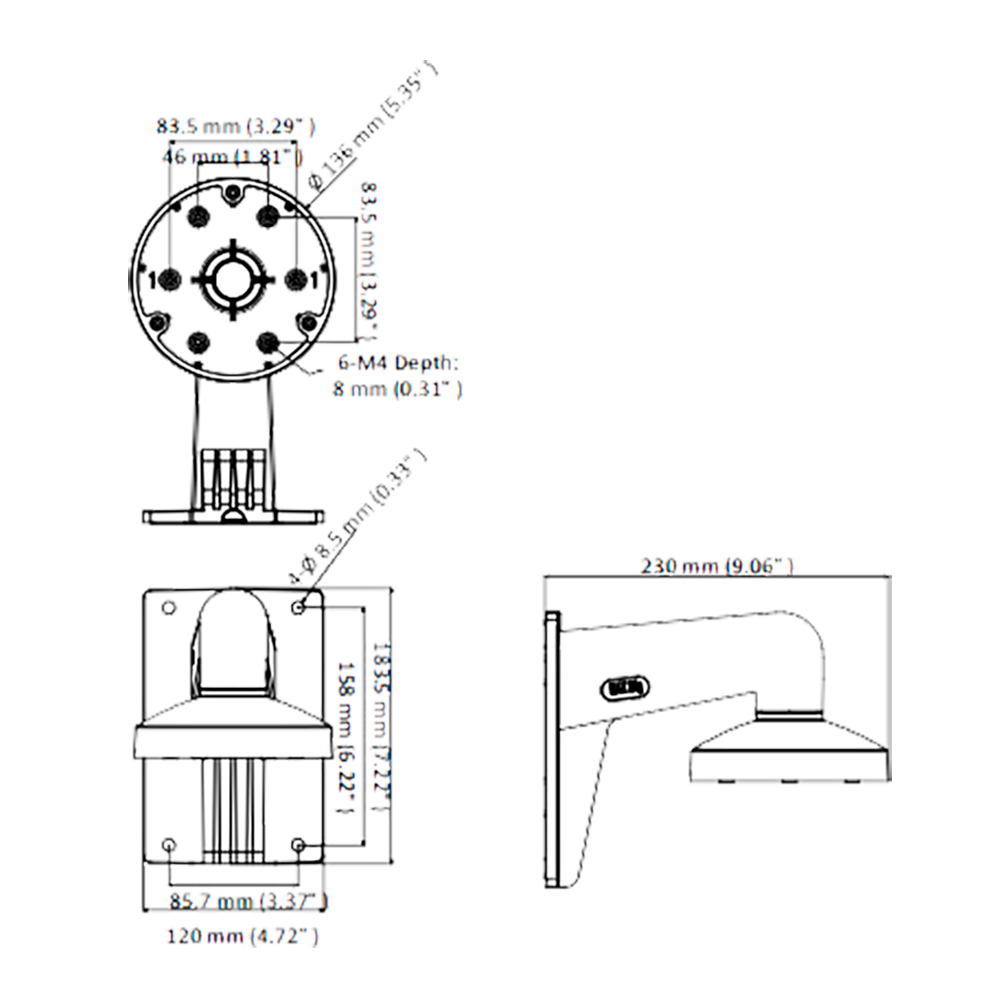 - 183.5 mm (Al) x 136 (An) x 230 (Fo)