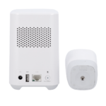 La configuración del kit incluye la estación base centralizada que gestiona las comunicaciones con ambas cámaras y almacena localmente las grabaciones, eliminando dependencias de servicios cloud externos y garantizando la custodia física de las imágenes conforme a la normativa RGPD aplicable a sistemas de videovigilancia.