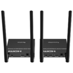 Extensor HDMI inalámbrico profesional con soporte 4K@60Hz y alcance de hasta 50 metros. Solución ideal para instalaciones de videovigilancia, salas de control y sistemas de seguridad donde el cableado tradicional resulta inviable o costoso. Transmisión estable punto a punto sin compresión visible.