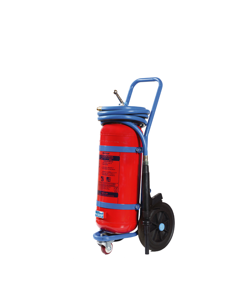 Extintor móvil 25 L HÍDRICO 27A IIB C Según norma UNE -EN 1866 Terminación: granallado y pintado con pintura 100% poliéster. Recubrimiento interior: PLASTIFICADO. Válvula: cuerpo de latón de alta calidad con baño anticorrosión y pintura metalizada. Manguera: 5 metros con pistola-metralleta con válvula de control.Ruedas: ø287 mm. Indicador de presión: 37mm, latón cromado, sin filtro. Temperatura de trabajo: +5°C a +60°. Certificados: Certificado Aprobación Marcado CE Fichas: Castellano Inglés Francés Portugués Alemán Rumano