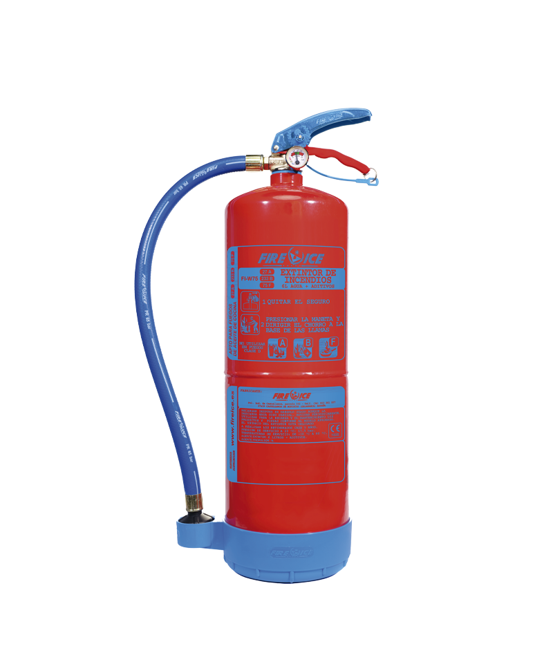 Extintor portátil 6 L HÍDRICO EFICACIA MEDIA 27A 233B 75F ESPECIAL COCINAS Terminación: granallado y pintado con pintura 100% poliéster. Recubrimiento interior: PLASTIFICADO. Válvula: cuerpo de latón de alta calidad con baño anticorrosión y pintura metalizada. M-30. Peana: Alta resistencia al impacto. Manguera-Difusor: Alta eficacia. Indicador de presión: 27mm latón cromado. Soporte mural: Incluido. Temperatura de trabajo: +5°C a +60°C. Tensión eléctrica hasta 35.000 V. Certificados: Certificado Aprobación Marcado CE Marca Calidad de Producto Fichas: Castellano Inglés Francés Portugués Alemán Rumano