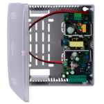 Fuente de alimentación profesional AC-12DC5A-BAT7AH-P diseñada específicamente para sistemas de control de accesos, con salida regulada 12V DC y capacidad de 5A. Incluye compartimento para batería auxiliar de 7Ah que garantiza continuidad operativa ante cortes eléctricos, ideal para instaladores profesionales que requieren alimentación confiable en cerraduras electromagnéticas y lectores de proximidad.