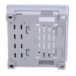 La caja plástica de montaje superficial facilita la instalación en armarios de telecomunicaciones, cuartos técnicos o espacios reducidos junto a las puertas de acceso. El diseño compacto optimiza el aprovechamiento del espacio disponible sin comprometer la accesibilidad para mantenimiento. Los orificios de fijación permiten anclaje seguro a paredes o paneles, mientras que las entradas de cable facilitan un cableado ordenado y profesional.