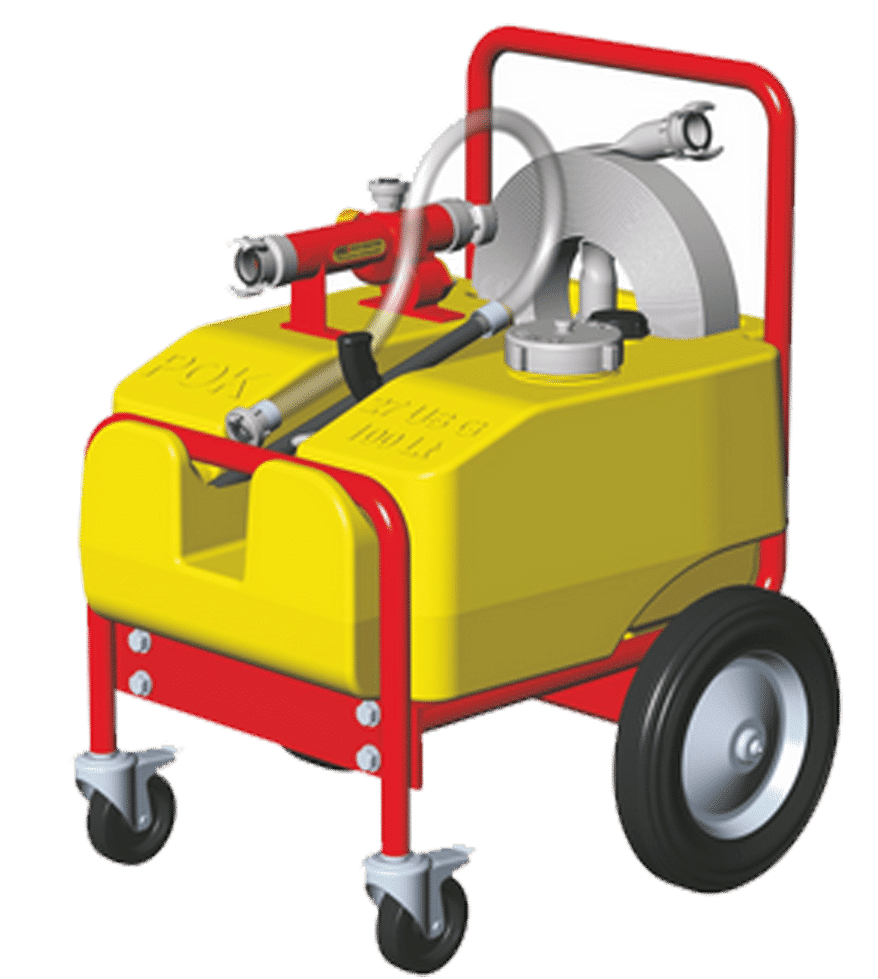 El grupo móvil de incendios GRM45, cuenta con un caudal de 200 l/min y está diseñado para proteger tanques de almacenamiento exteriores, riesgos interiores de líquidos inflamables o estanterías de carga. Se usa para la protección de procesos y tanques de almacenamiento a la intemperie. Está compuesto por: