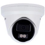 Cámara IP tipo Turret de 4 megapíxeles con lente gran angular de 2.8mm, diseñada para instalaciones profesionales de videovigilancia perimetral y control de accesos. Incorpora iluminación infrarroja de 30 metros, protección IP67 contra intemperie y tecnología AcuSense para detección inteligente de personas y vehículos.