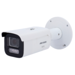 Cámara bullet IP profesional de 8 megapíxeles con tecnología Smart Hybrid Light y ColorVu de Hikvision. Equipada con lente motorizada varifocal 2.8-12mm, iluminación infrarroja hasta 60 metros y certificación IP67 para instalaciones en exterior. Ideal para videovigilancia perimetral, control de accesos y monitorización de instalaciones industriales.