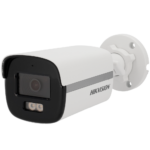 Cámara bullet HD 4 en 1 de Hikvision con lente de 2.8mm, alcance infrarrojo de 40 metros y protección IP67. Diseñada para instalaciones profesionales de videovigilancia perimetral en condiciones climáticas adversas, garantiza imágenes nítidas tanto de día como de noche.