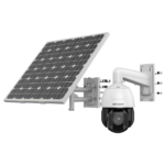 Cámara PTZ motorizada Hikvision DS-2DE5425IWG-K/4G con resolución 4MP, zoom óptico 25X y alimentación solar autónoma. Conectividad 4G/WiFi 2.4GHz para instalaciones remotas sin infraestructura eléctrica ni cableado de red. Solución profesional para vigilancia perimetral, explotaciones agrícolas, obras y ubicaciones aisladas.