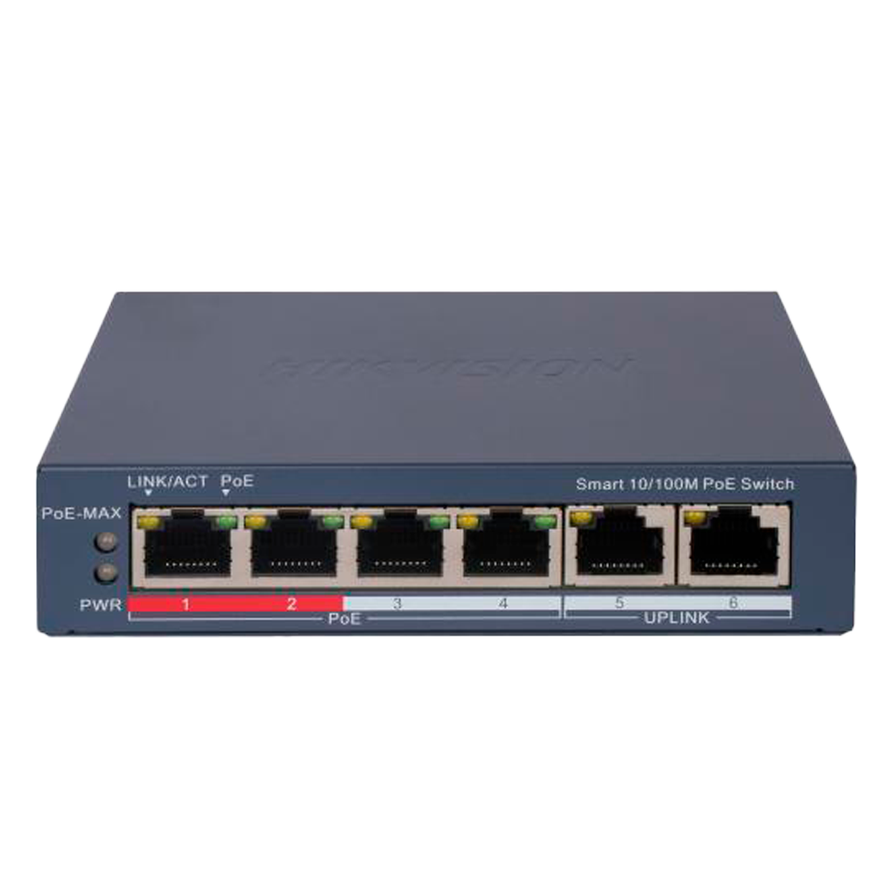 - 4 puertos Poe RJ45 10/100Mbps + 2 Uplink 10/100Mbps