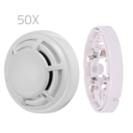 El kit 50XKIT-DMT-HEAT de DMTech incluye 50 detectores térmicos convencionales certificados EN54-5 con sus bases correspondientes, diseñado para instalaciones profesionales de detección de incendios en sistemas analógicos. Solución completa para empresas instaladoras y mantenedoras que buscan equipamiento homologado de alta fiabilidad en proyectos de protección contra incendios de mediano y gran tamaño.