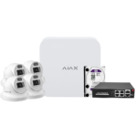 Kit completo de videovigilancia IP PoE Safire AJ-NVRKIT108T-4 con grabador NVR de 4 canales, 4 cámaras turret de alta resolución y disco duro de 1TB preinstalado. Solución profesional lista para instalar, ideal para pequeños comercios, oficinas y viviendas que requieren vigilancia perimetral con tecnología Power over Ethernet para instalación simplificada.