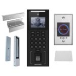 El kit de control de acceso Hikvision DS-KAS321 integra cuatro métodos de identificación: reconocimiento facial avanzado, lectura de huella dactilar, tarjeta Mifare y código PIN. Solución autónoma profesional diseñada para instaladores y empresas que requieren un sistema de seguridad perimetral multicapa con gestión de usuarios flexible y registro completo de eventos.