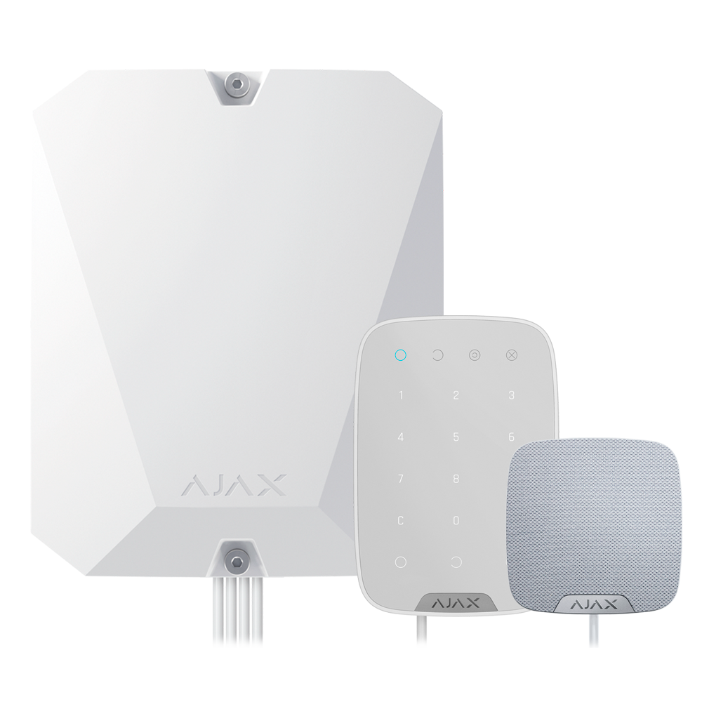 - Kit formado por: un panel híbrido FIBRA-HUBHYBRID-4G-W, una sirena de interior cableada FIBRA-HOMESIREN-W y un teclado cableado FIBRA-KEYPAD-W