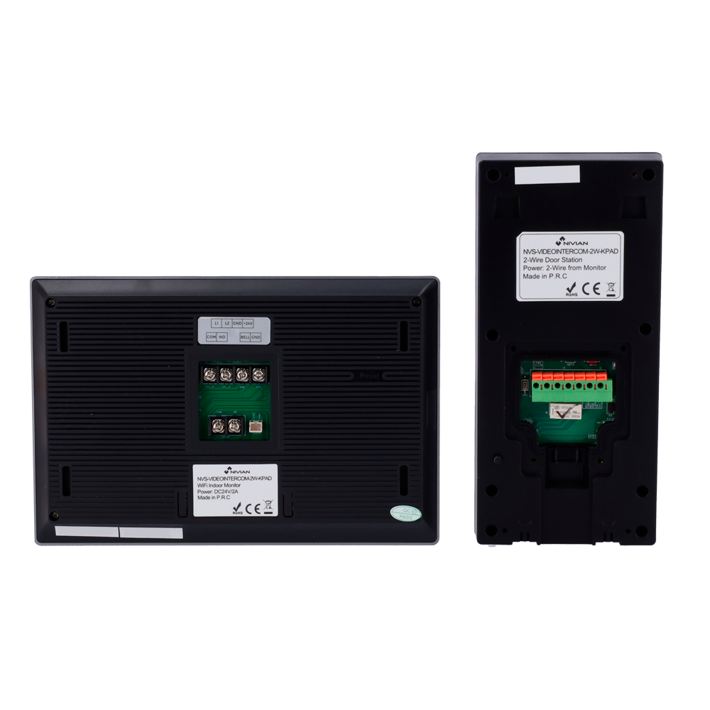 Kit videoportero 2 Hilos Nivian: monitor interior + placa exterior + bus 2 hilos. Lector Mifare. Control desde app Tuya. Ref. NVS-VIDEOINTERCOM-2W-KPAD.