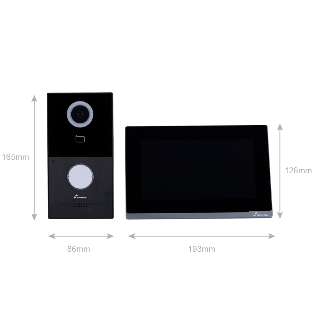 Kit videoportero 2 Hilos Nivian: monitor interior + placa exterior + bus 2 hilos. Lector Mifare. Control desde app Tuya. Ref. NVS-VIDEOINTERCOM-2W.